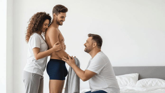 Learning on the job isn’t always the best way so the next best way is through simulation and hands-on guidance. Using a tool like a dildo, or better yet a strap-on allows him to practice under your guidance in a safe, pressure-free environment. This helps for two reasons, it gauges his reaction in the safety of your bedroom without a third person. It also gives him a feel for positioning, rhythm, and your verbal control without the emotional intensity of a real encounter. The focus is on learning through experience and guidance and let’s be honest, it is extremely hot watching him.