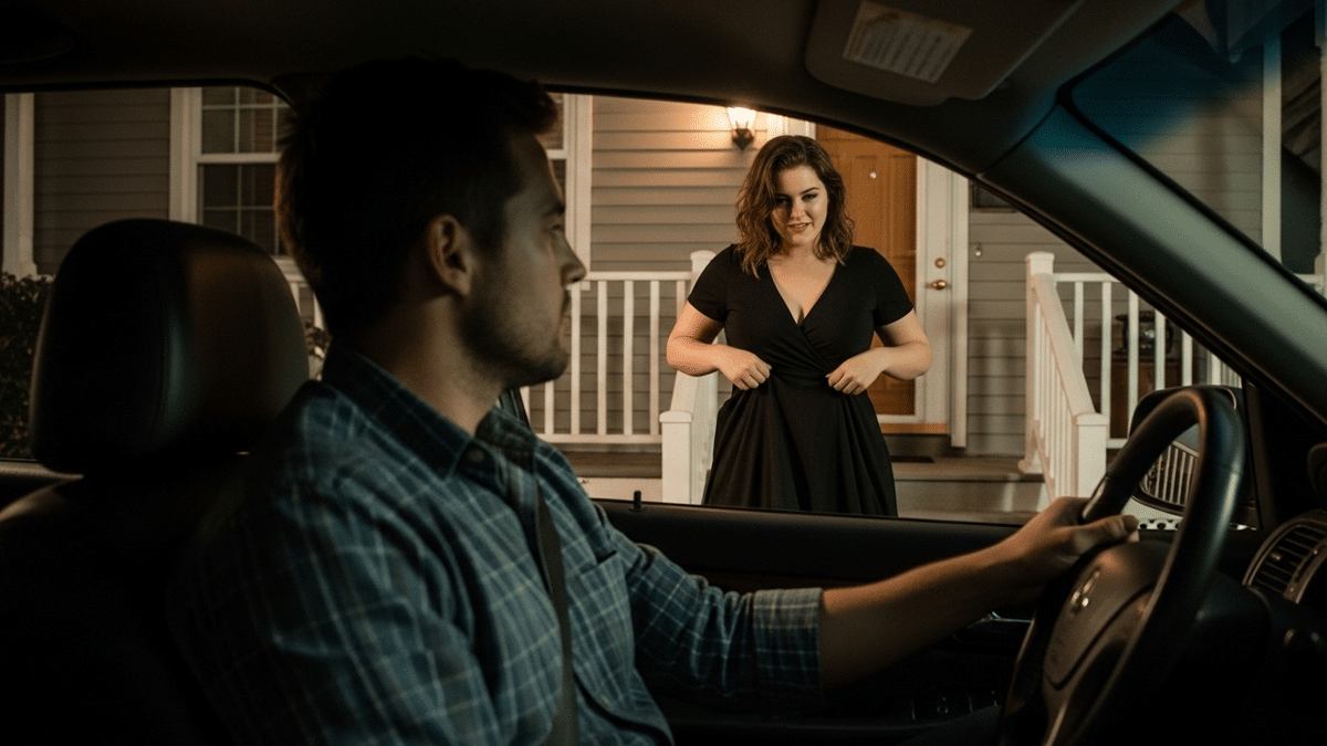 In the car, Mark’s chest tightened. He’d been sitting there long enough to hear the radio cycle through two talk shows and a weather report. His heart kicked harder when she turned the latch on the screen door, the tiny clink echoing through the quiet street.