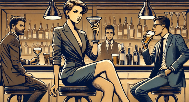 The man, Charles, as he introduced himself—was visiting from out of town, here on business. His handsome suit hung neatly on his frame, his polished manner contrasting with the casual vibe of the bar. Charles had a sharp jawline, an easy smile and a steady demeanor that balanced his personality. Myra leaned forward as she sipped her martini, her eyes sparkling as she bantered with him.